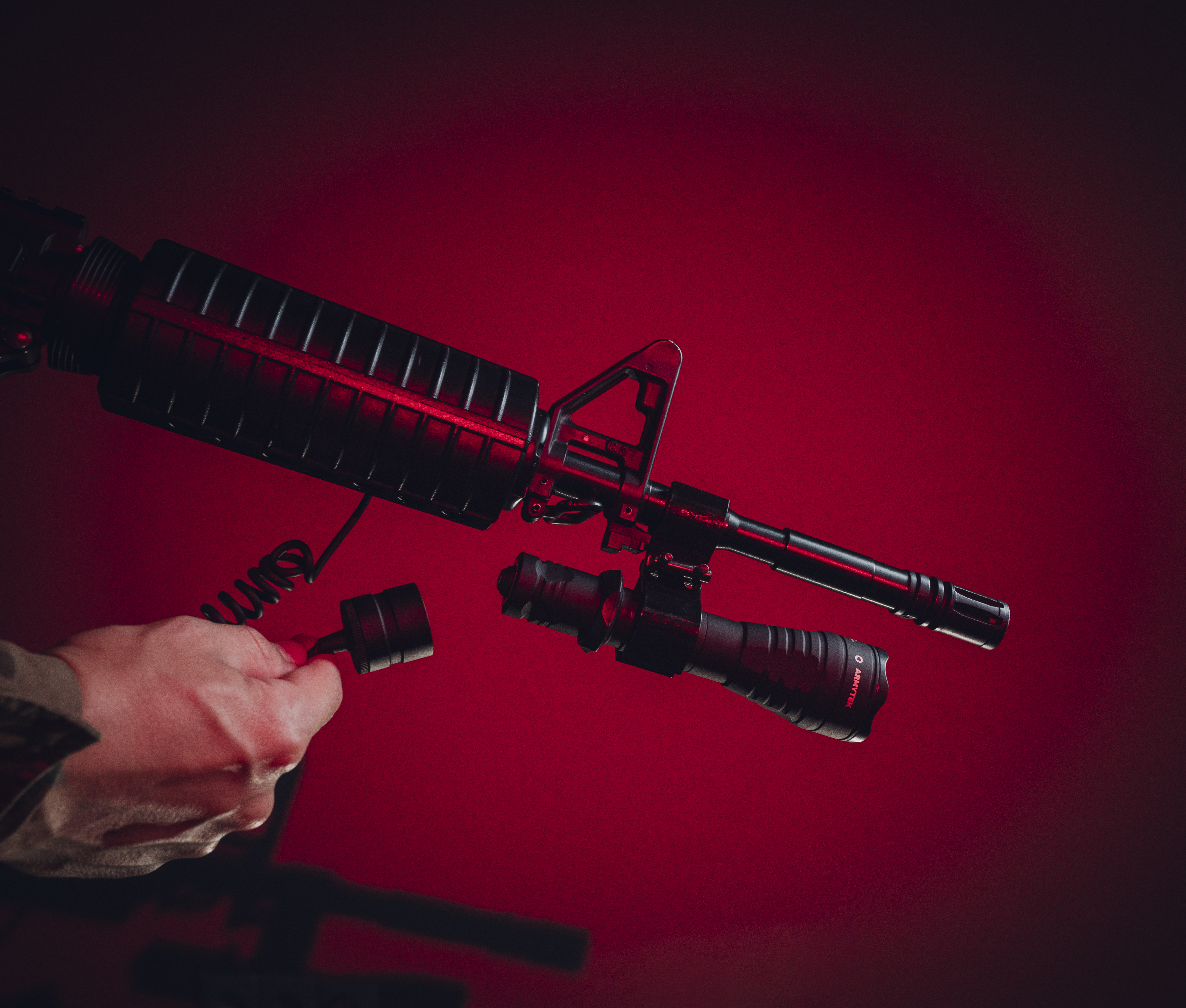 • Два типа управления: Охотничий и тактический режимы для быстрого доступа к максимальной яркости и стробоскопу.