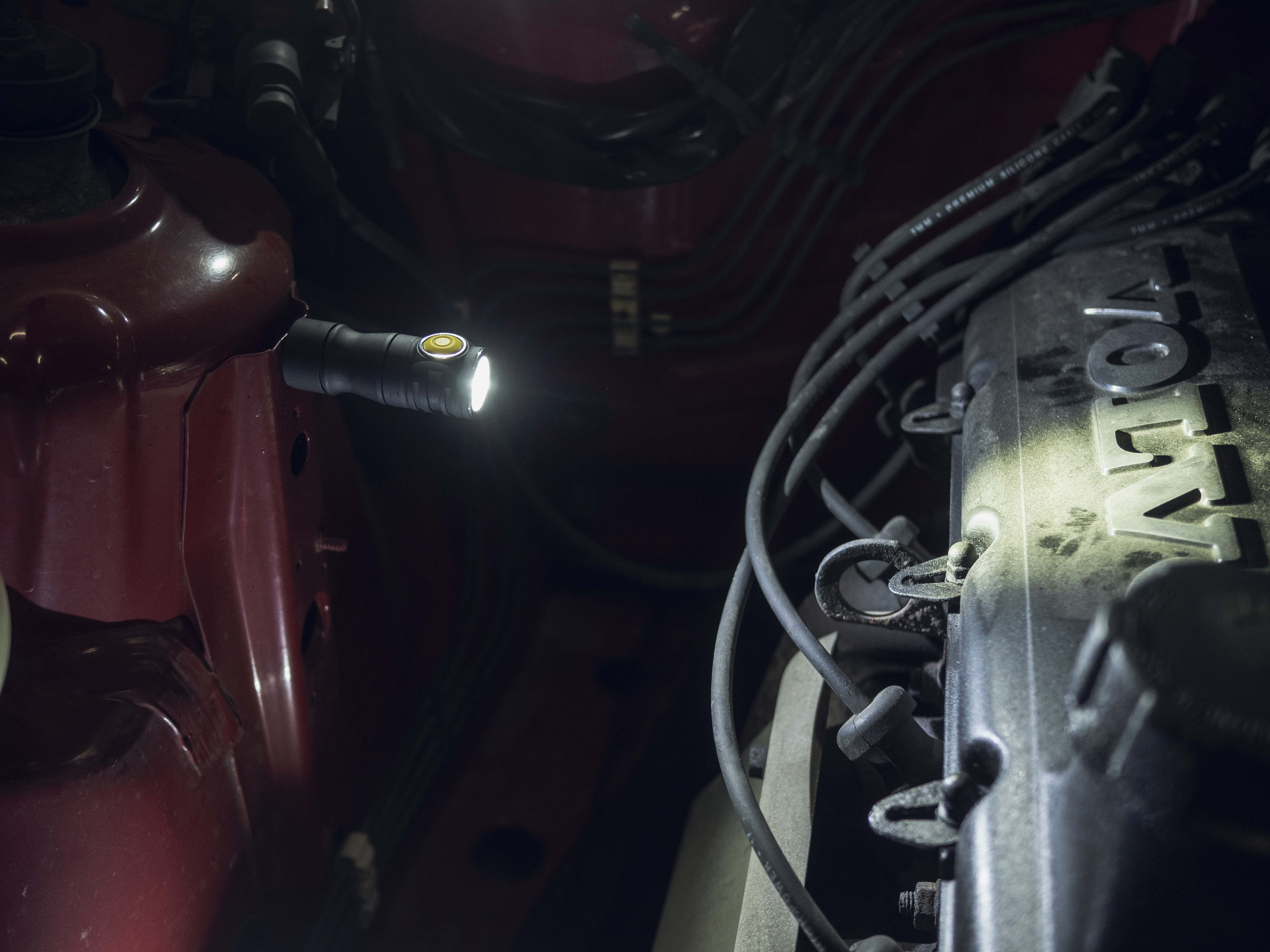 - Мощный свет: несмотря на компактный размер, фонарь обеспечивает яркость до 930 люмен, что позволяет освещать объекты на расстоянии до 114 метров. Он идеально подходит для повседневных нужд, таких как прогулки или походы, и даже может заменить велофару.