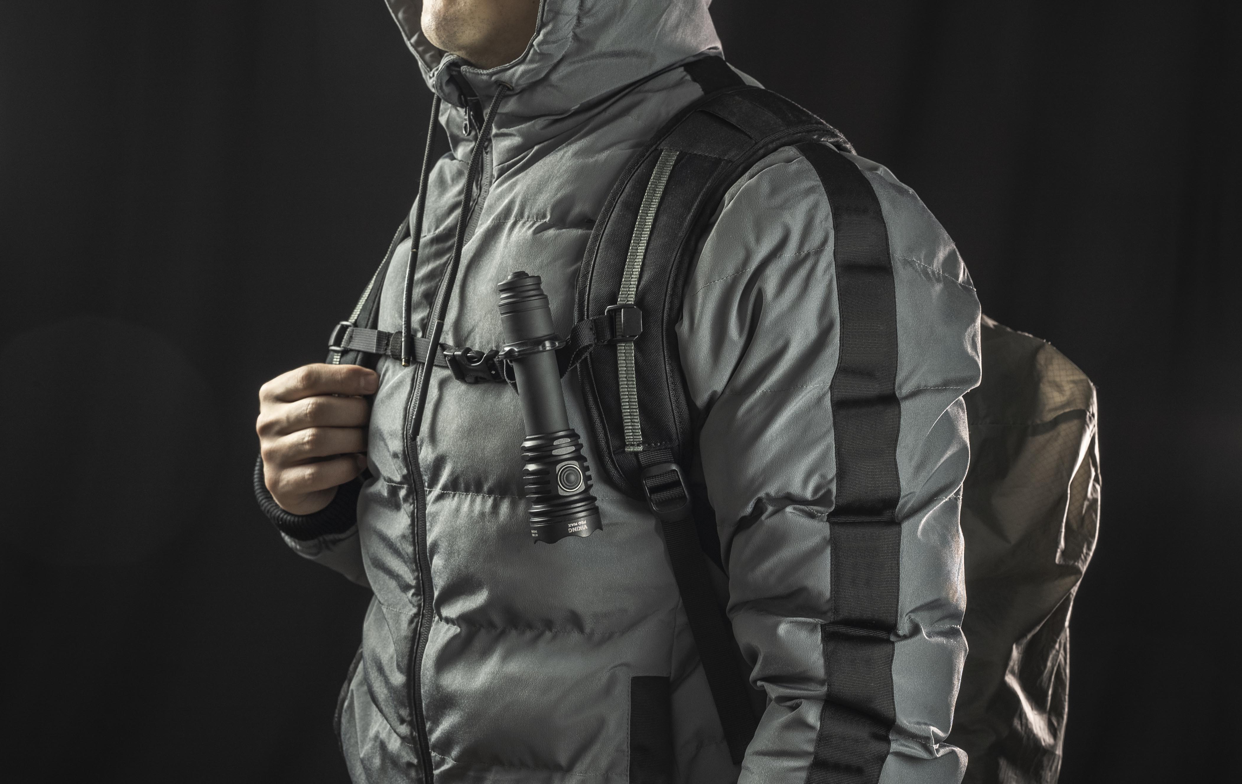 Флагман серии Viking Более 15 лет опыта разработок позволили нам создать самый потрясающий луч света для тактического фонаря, который значительно превосходит другие. Viking Pro Max — это тактический фонарь с впечатляющей яркостью в 5000 люмен для решения специализированных задач и для охоты. Большое центральное пятно и широкая боковая засветка делают Viking Pro Max лучшим решением при использовании на ближней и средней дистанции. Оптимальный выбор для высвечивания значительного пространства на открытой местности и в больших помещениях. Наличие двух кнопок управления обеспечивает быстрый доступ к необходимым режимам при использовании фонаря в качестве ручного. Viking Pro Max совместим со специально разработанной магнитной выносной кнопкой и оригинальными креплениями для подствольного применения. Модель работает не только на комплектном элементе питания, но и на любом стандартном аккумуляторе 21700 Li-Ion, а также, благодаря адаптеру, на аккумуляторе 18650 Li-Ion или на двух литиевых батарейках CR123A. Вариативность элементов питания позволяет значительно повысить автономность. Возможности Viking Pro Max Обновленная оптическая система: мощный широкий диод в сочетании со специальным рефлектором создает большое центральное пятно с широкой боковой засветкой при впечатляющей яркости. Детально проработанная конструкция головы: новая конструкция для лучшего теплоотвода. Обновленная электроника: продолжительное время работы при высокой яркости. Удобное управление: отдельная боковая кнопка с мягким нажатием для переключения режимов, тактическая кнопка для включения и выключения фонаря, а также для быстрого доступа к режиму Стробоскоп. Удобное управление: Электронная тактическая кнопка: бесшумная электронная кнопка исключает демаскировку на охоте или во время спецопераций, в 20 раз долговечнее механической. Быстрая магнитная зарядка: комплектный аккумулятор 21700 Li-Ion 5000 мАч заряжается за 2 ч 45 мин. Усовершенствованная активная защита от перегрева в режиме реального времени: обеспечивает безопасное и комфортное использование. При приближении температуры к +58 °C яркость снижается, что позволяет избежать перегрева фонаря и аккумулятора, а также деградации диода. Соответствует европейским требованиям безопасности. Улучшенные пружины: использование новых пружин для лучшей защиты аккумулятора и драйвера и увеличения эффективности работы. Стальная ударная кромка: для дополнительной защиты оптической системы при падении и для самообороны. Совместимость с элементами питания различных типоразмеров: фонарь работает на одном стандартном аккумуляторе 21700 Li-Ion или 18650 Li-Ion, а также на двух литиевых батареях CR123A. Готовое к использованию решение: аккумулятор высокой емкости 21700 Li-Ion 5000 мАч, адаптер для использования аккумуляторов 18650 Li-Ion или батарей CR123A, быстрая магнитная USB-зарядка в комплекте. Совместимость с магнитной выносной кнопкой: опциональная магнитная выносная кнопка с возможностью моментального (только при нажатой кнопке) или постоянного включения света. Легко устанавливается на фонарь одним движением без необходимости откручивать заднюю крышку. Продуманный комплект аксессуаров Грип-упор Травмобезопасный эргономичный силиконовый грип-упор для удобного тактического хвата. Клипса Стальная клипса с износостойким черным титановым покрытием для крепл