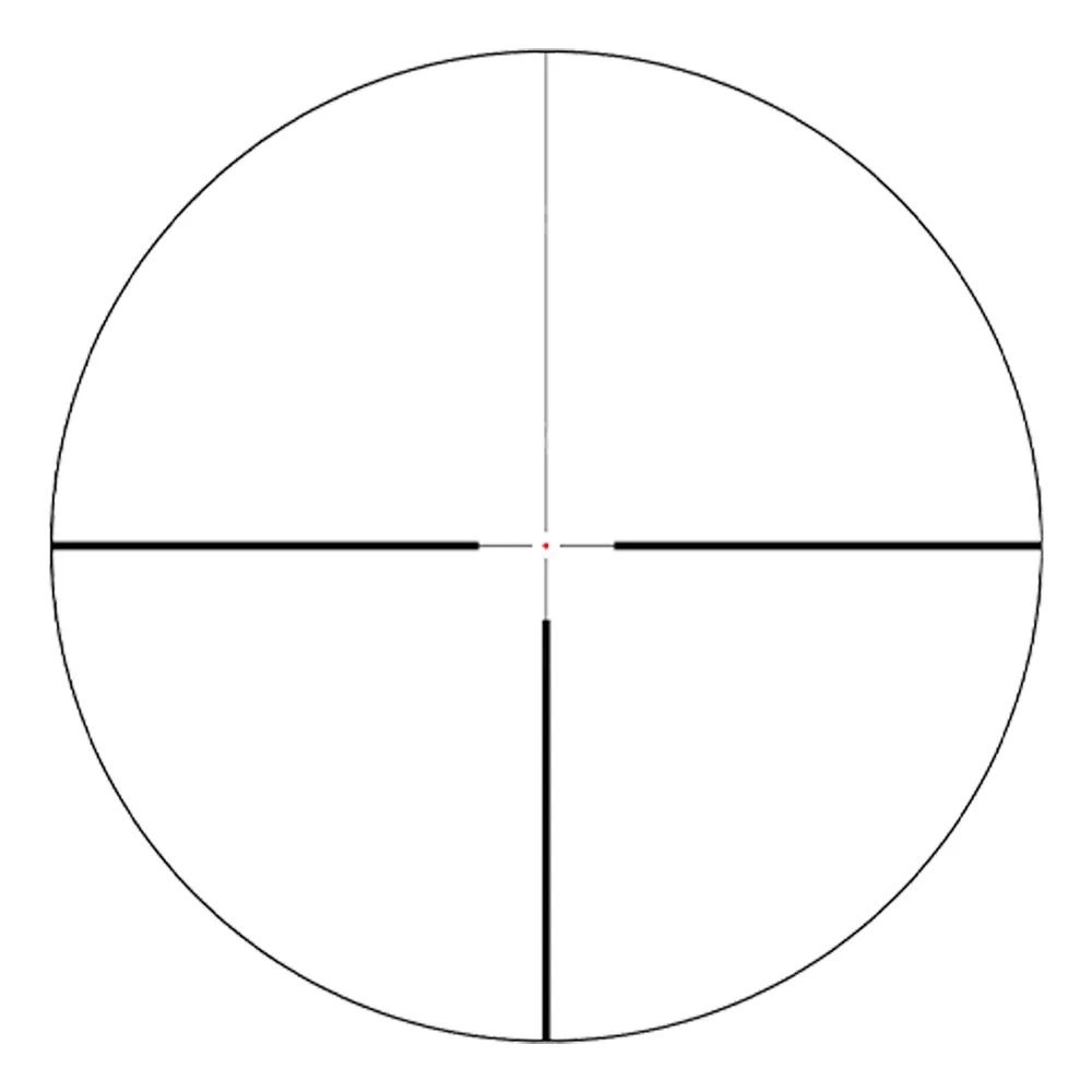 Прицельная сетка German #4 с подсветкой центральной точки. Марка не масштабируемая (II фок.плоскость, SFP), не меняет размеров при изменении увеличения и не перекрывает обзор даже на 6x. Тонкое перекрестье между «пеньками» обеспечивает быстрый захват цели, а «плавающая» точка ø0,52 MOA в центре — точное прицеливание по месту. Толщина «пеньков» 0,84 MOA, прицельных линий 0,17 MOA; расстояние от «точки» до «пенька» 7,5 MOA. Для удобства прицеливания в сумерках и улучшения видимости метки на сложном фоне или на ярком солнце центральная точка подсвечивается красным. Доступно 6 уровней яркости с выключением подсветки в промежуточных положениях.